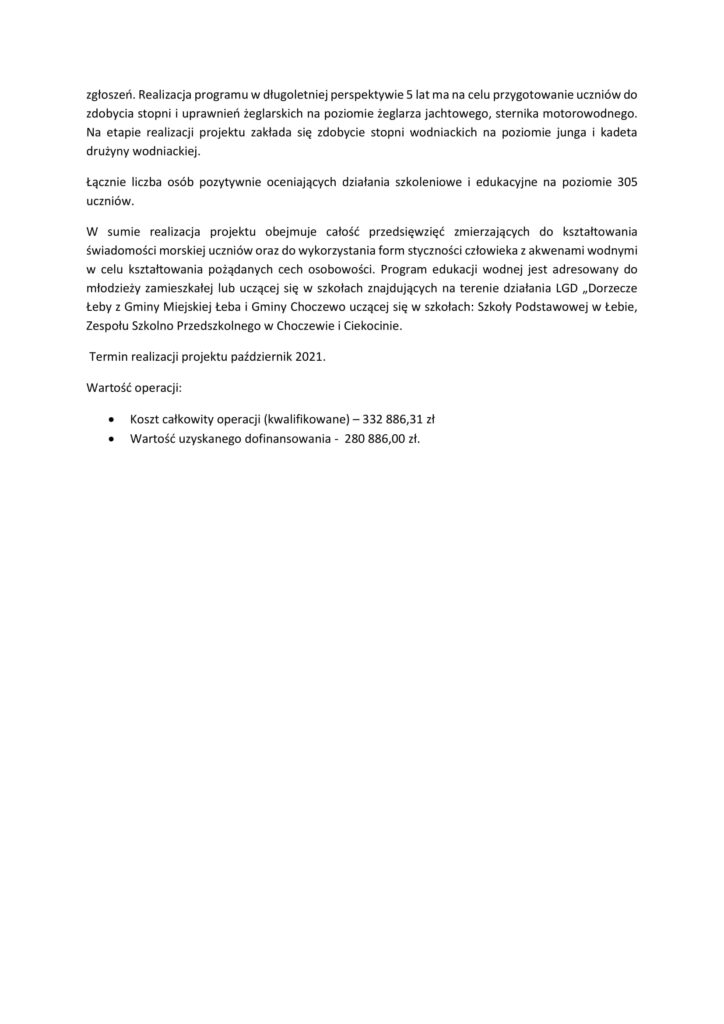 Łeba Perłą jest Bałtyku – projekt